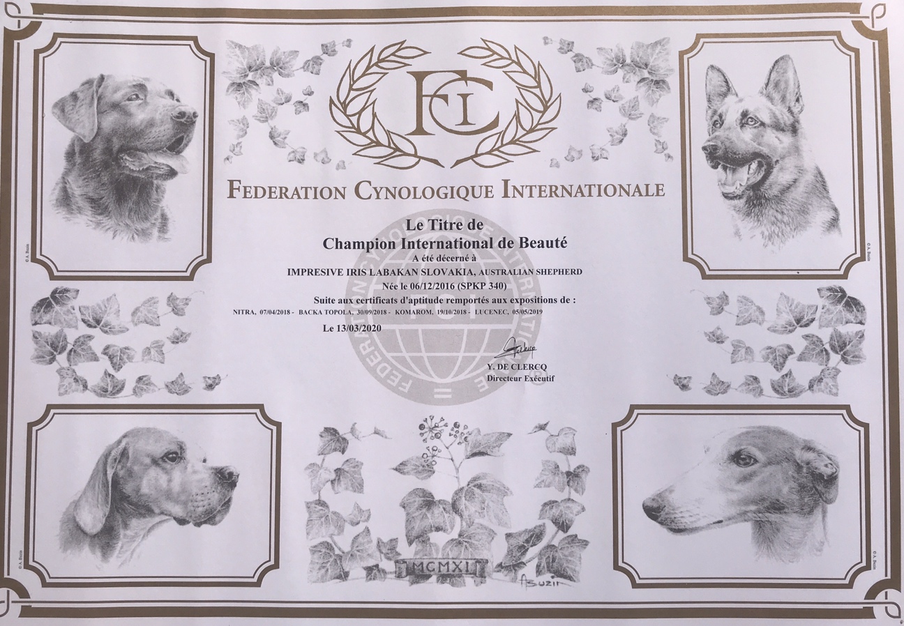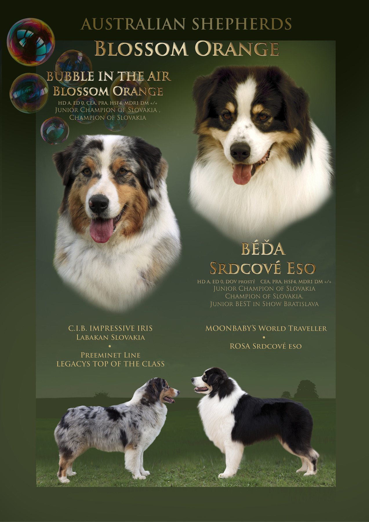 V našej chovnej stanici sa 31.mája narodilo 6 krásnych zdravých šteniat, traja psi a tri suky, momentálne su k rezervácii. Mama je junior šampión Slovenska a šampión Slovenska, dcéra našej Interšampiónky Honey /Impressive iris Labakan Slovakia/