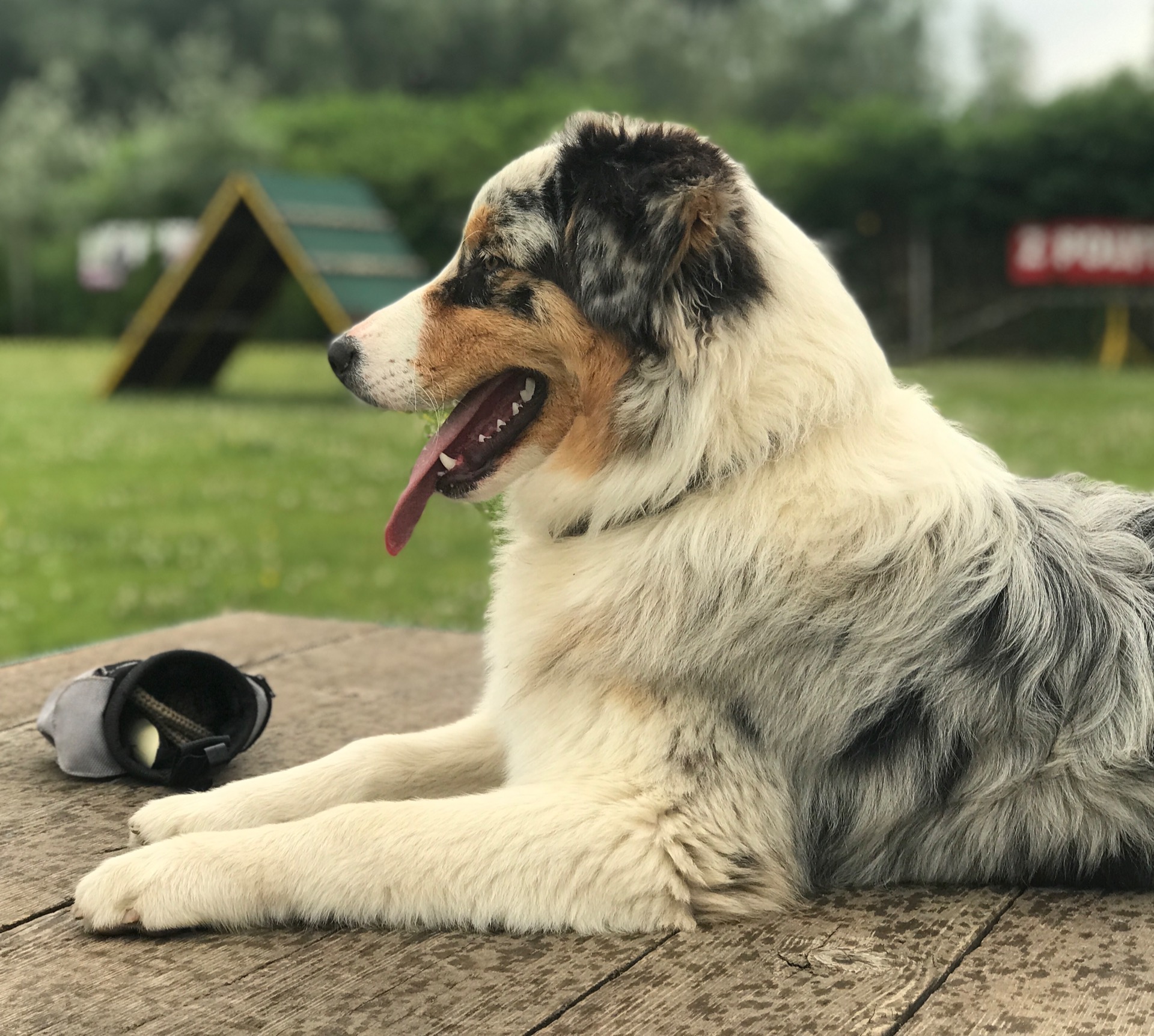 Jeden blue-merle pes NBT s kupírovaným chvostom