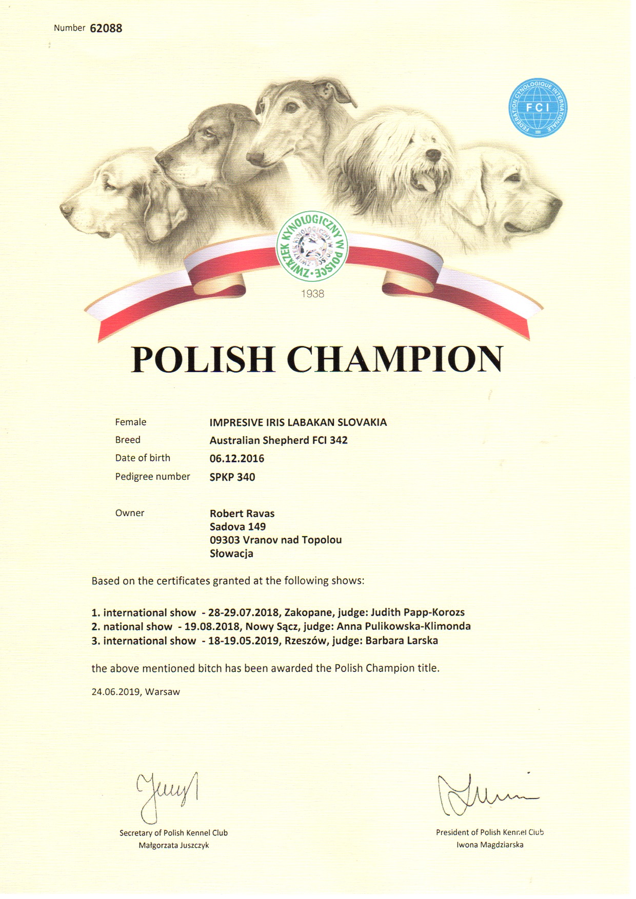 - V1, CAC, CACIB,BOS Lučenec, SK